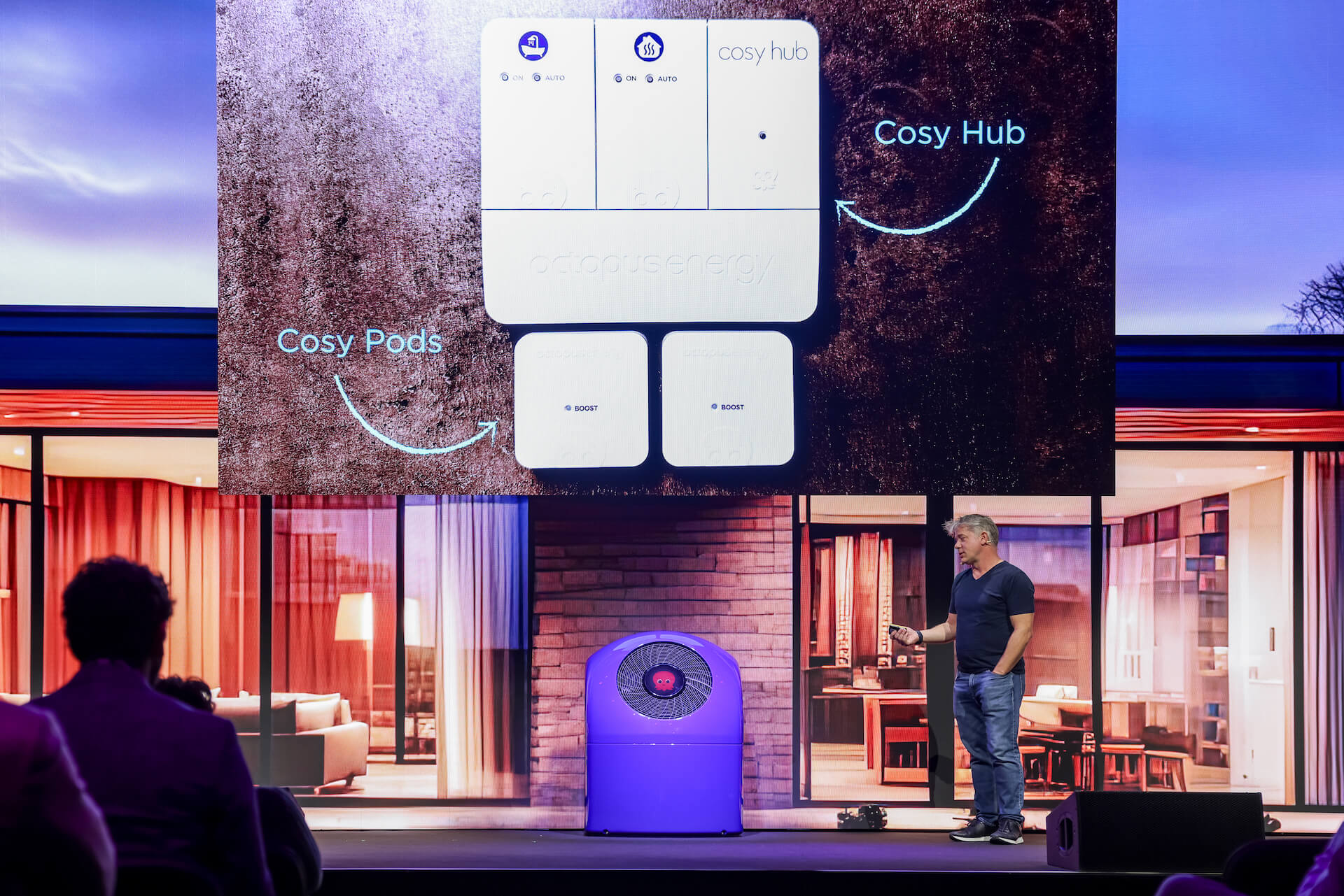 Das System besteht aus der Cosy 6, der neuen Wärmepumpe von Octopus, dem Cosy Hub, einem Haussteuerungssystem, den Cosy Pods, Raumsensoren und einem maßgeschneiderten intelligenten Tarif mit dem Namen Cosy Octopus.